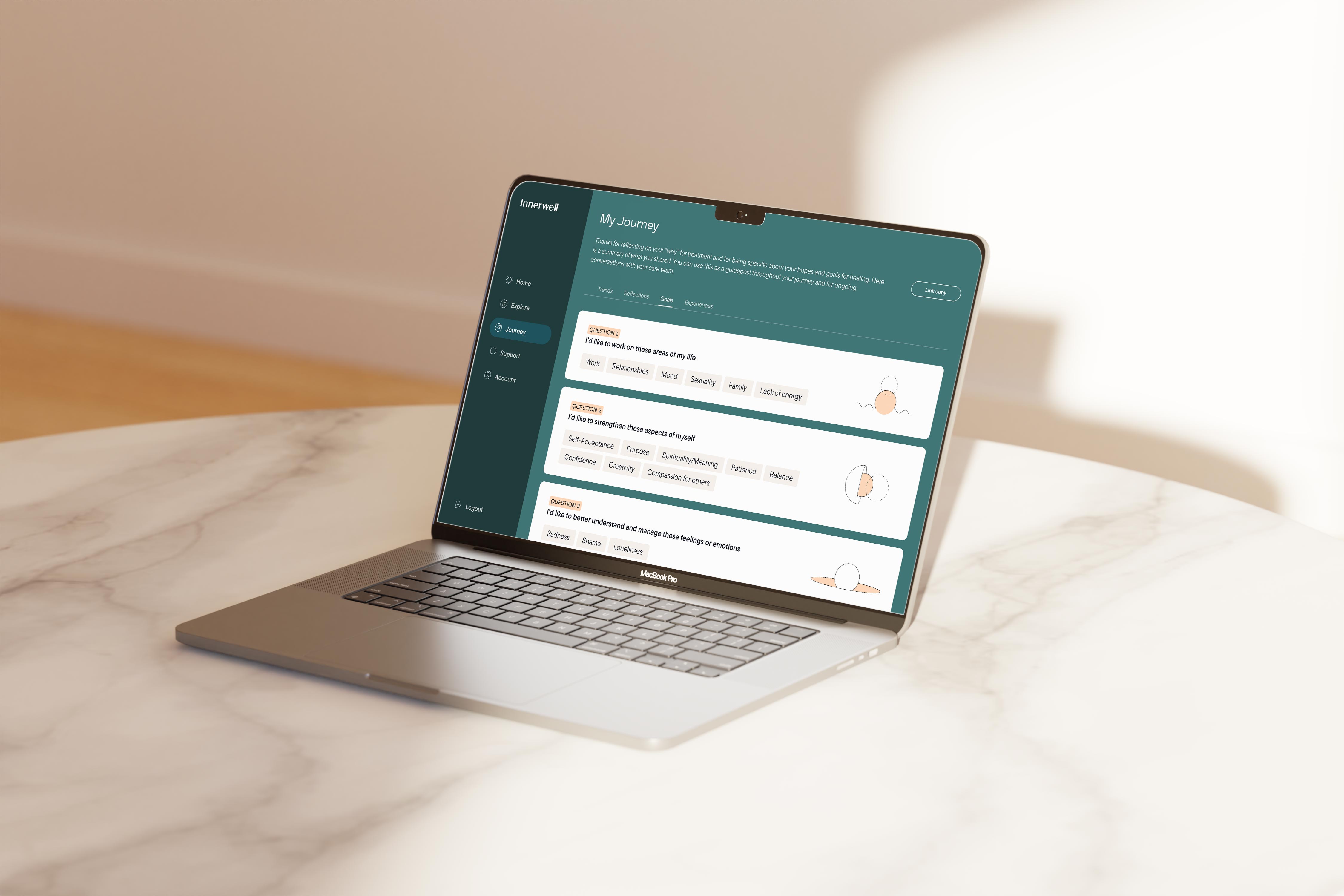 The Innerwell platform aims to help its users in the addiction recovery process with professional virtual and physical assistance. The goal was to optimise the user experience, create and build a design system, improve individual interactive segments of the application and design a responsive and adaptive application interface.