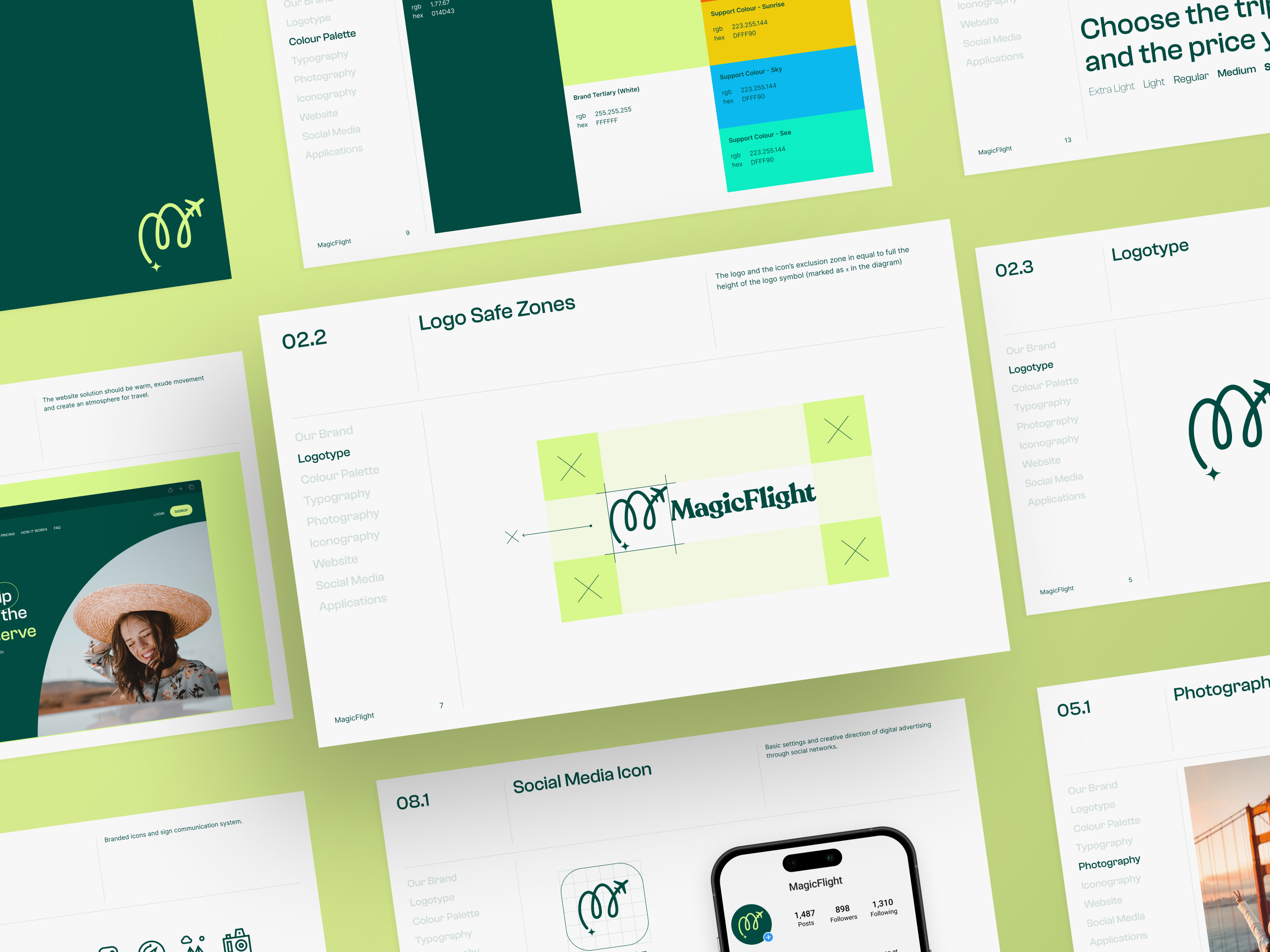 MagicFlight provides its users with the service of informing them about the reduced prices of the desired flights. The entire service, as well as the brand on which the service is reflected, is focused on the starting point of the journey, and the journey to the destination. The adopted logo basically represents these two elements, the beginning of the journey and the flight to the destination in the form of a graphically constructed latin letter "M". In the very process of creation, I came up with several very interesting solutions for the logo symbol, which I will also present in this case study.