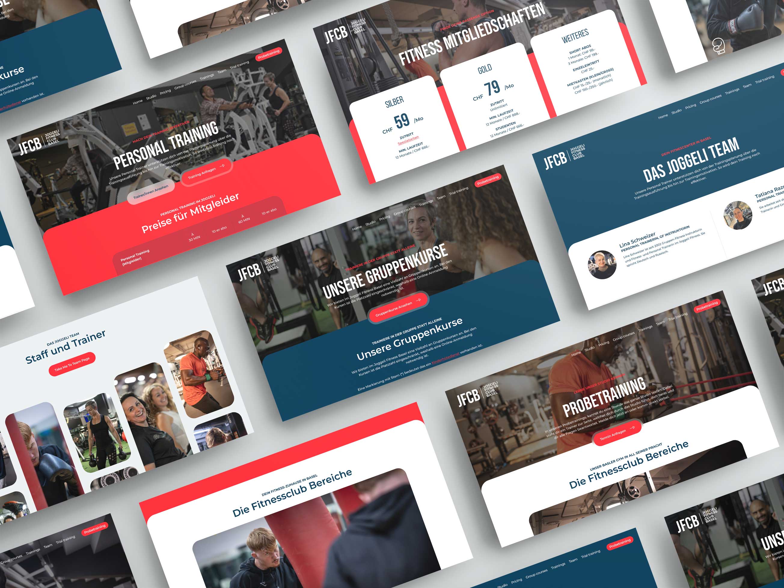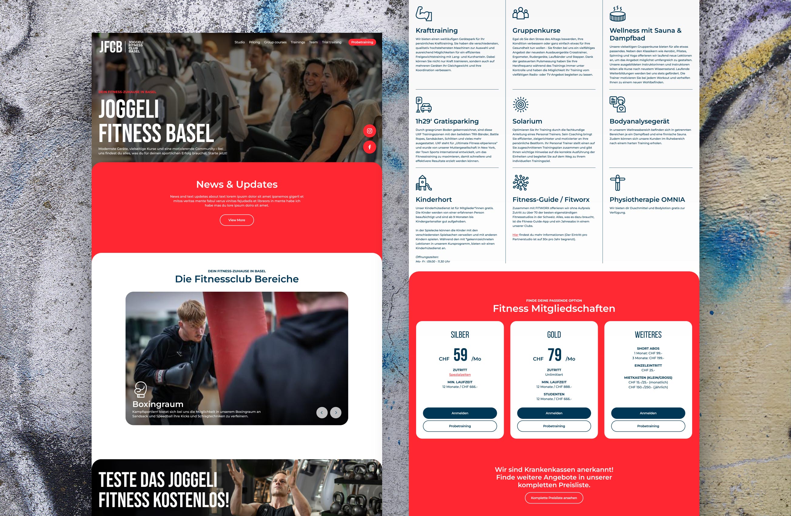 Joggeli fitness, located in Basel, is a center with state-of-the-art equipment, diverse courses and a motivating community. The goal of the project, in front of the creative agency uovo GmbH from Switzerland, was to redesign their website. Work on the redesign began with suggestions for potential creative directions.