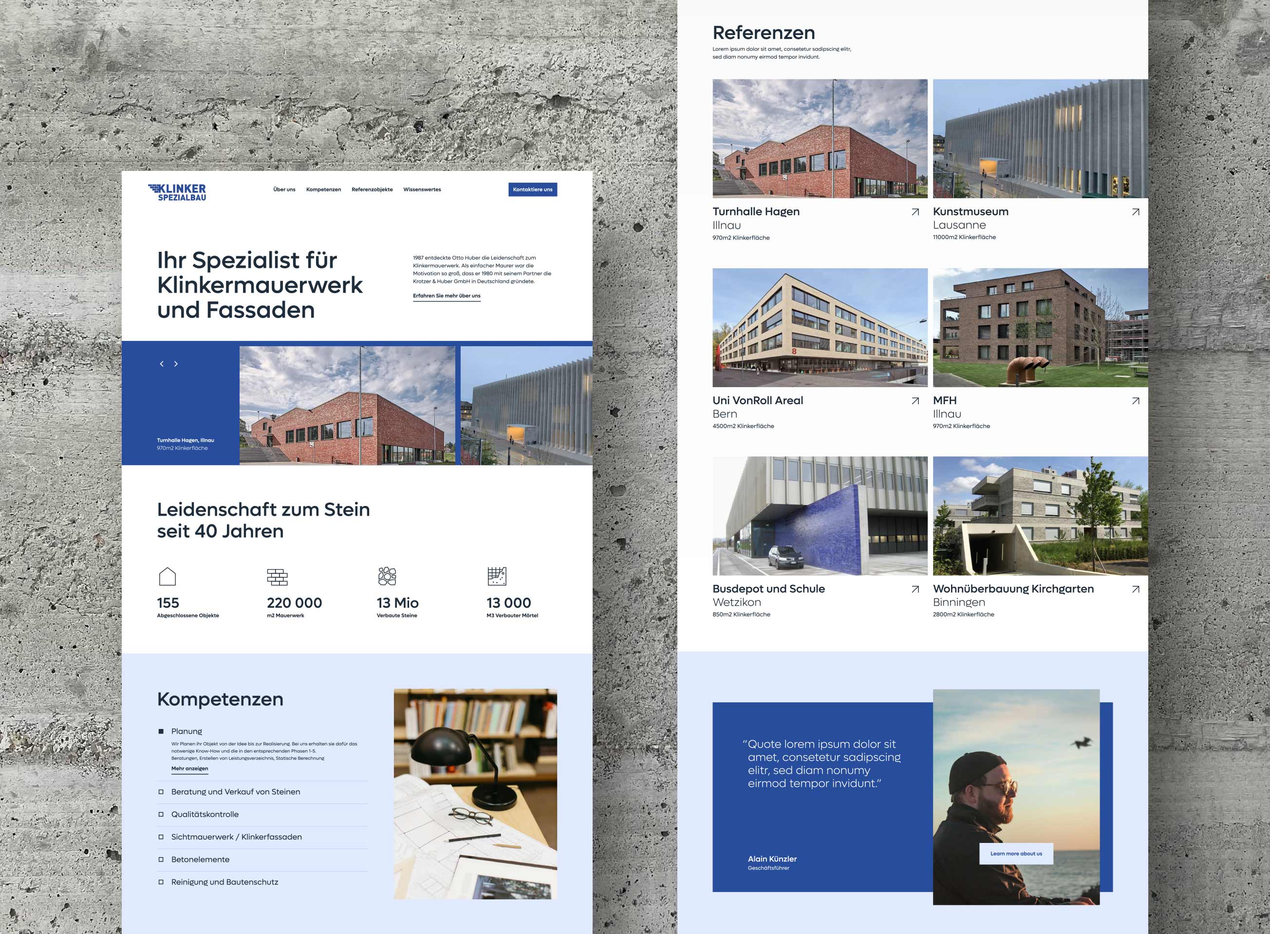 Otto Huber discovered his passion for masonry in 1987. As an ordinary bricklayer, his motivation was so great that he founded Krotzer & Huber GmbH in Germany with his partner in 1980. In front of the creative company UOVO GmbH from Switzerland, I was assigned the task of working on the redesign and creative direction of their website.