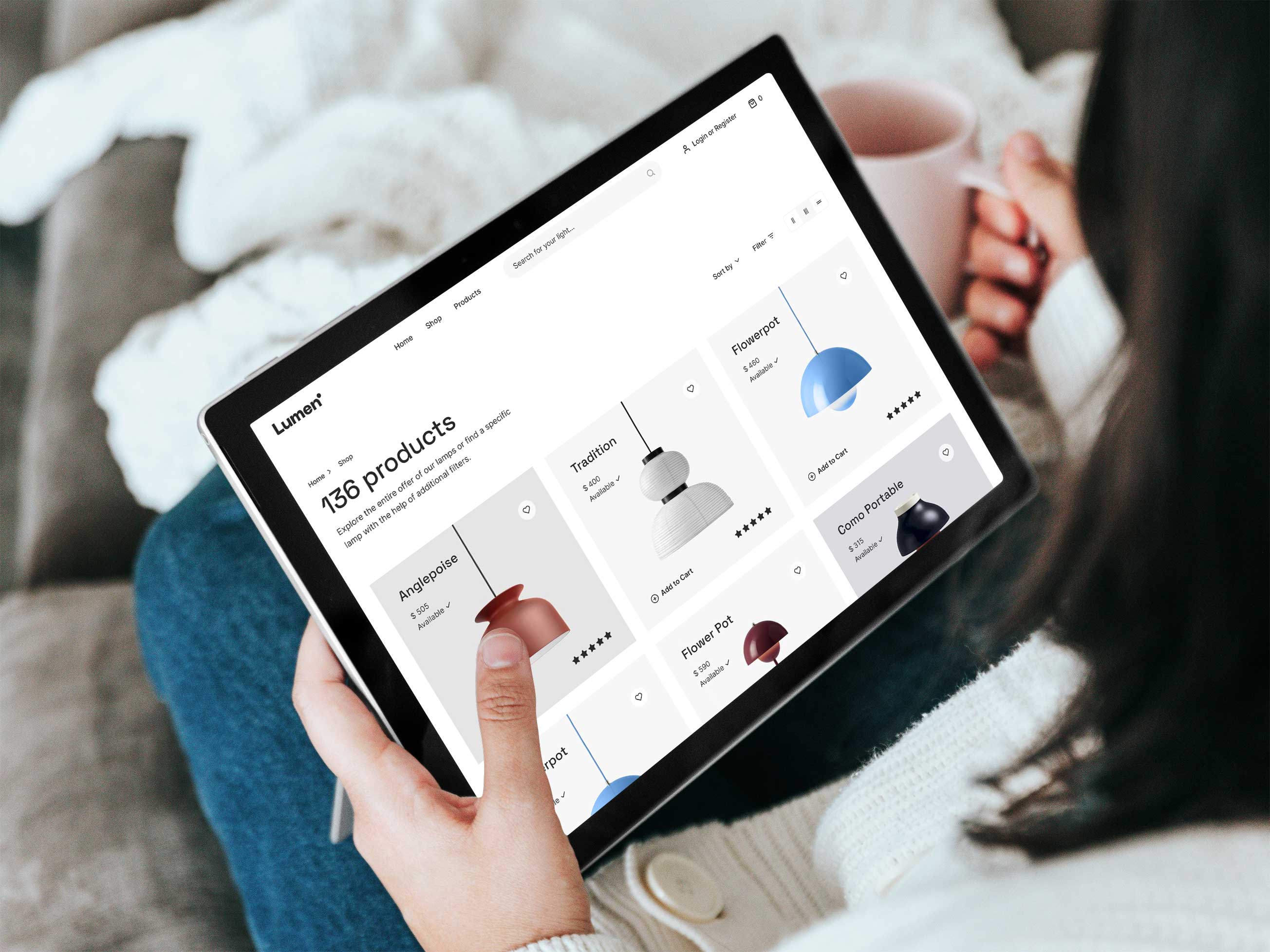 Lumen is a digital place where users can buy designer lamps. The task of the project was to come up with a brand name, then, based on the adopted name, to come up with a logo and a sales (e-commerce) website. In addition to all of this, a web design system was also created in order to make the functional units easier to scale and further transfer to development.